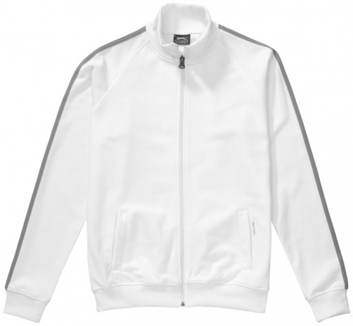 OPIS: Bluza rozpinana Court. Mankiety oraz pas z dzianiny ściągaczowej 1x1 rib knit.Paski na rękawkach w kontrastowym kolorze.2 kieszenie na przodzie.Logo Slazenger nadrukowane na kieszeni na przodzie.Metalowy zamek na przodzie.Spodnie do kompletu są również dostępne. Dwustronna dzianina piqué 50 % poliestru, 50 % bawełny. 290 g/m².