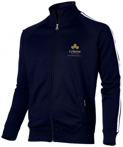 OPIS: Bluza rozpinana Court. Mankiety oraz pas z dzianiny ściągaczowej 1x1 rib knit.Paski na rękawkach w kontrastowym kolorze.2 kieszenie na przodzie.Logo Slazenger nadrukowane na kieszeni na przodzie.Metalowy zamek na przodzie.Spodnie do kompletu są również dostępne. Dwustronna dzianina piqué 50 % poliestru, 50 % bawełny. 290 g/m².