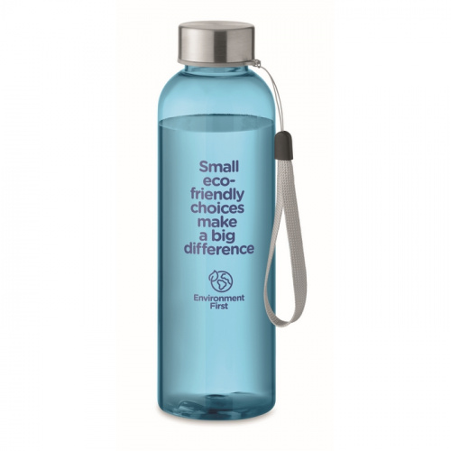 OPIS: Butelka do picia z materiału Tritan Renew™, który nie zawiera BPA, z zakrętką z uchwytem ze stali nierdzewnej. Szczelna. Pojemność 500 ml. Ten produkt jest wykonany w 50% z odpadów z tworzyw sztucznych przy użyciu certyfikowanego bilansu masy ISCC.