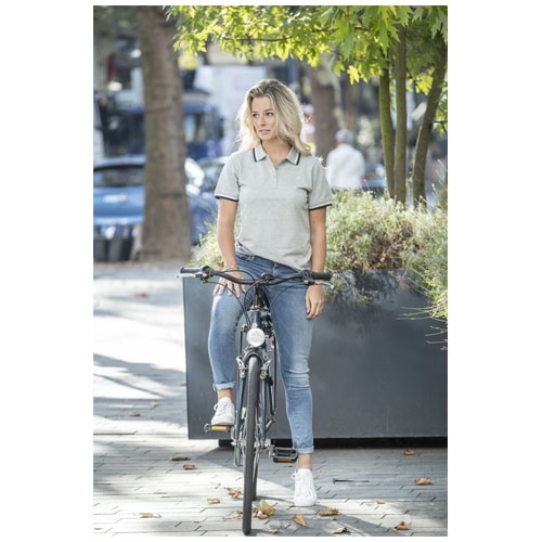 OPIS: Damskie polo Fairfield z krótkim rękawem z lamówką. Kołnierzyk z płaskiego splotu.Mankiety z płaskiej dzianiny ściągaczowej.Lamówka w kontrastowym kolorze przy kołnierzyku oraz rękawkach.Plisa na 3 guziki.Guziki z wygrawerowanym logo w kolorze materiału.Metka wdrukowana transferem dla lepszego komfortu. Splot piqué, 100% bawełna. 180 g/m².