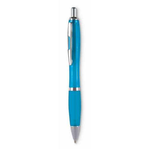 OPIS: Wciskany długopis z ABS z miękkim uchwytem. Niebieski wkład.
