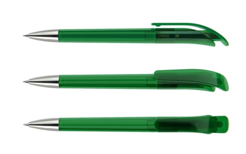OPIS: długopis plastikowy z mechanizmem automatycznym wciskanym, korpus kolorowy transparentny, powierzchnia gładka - polerowana, szpica metalowa srebrna