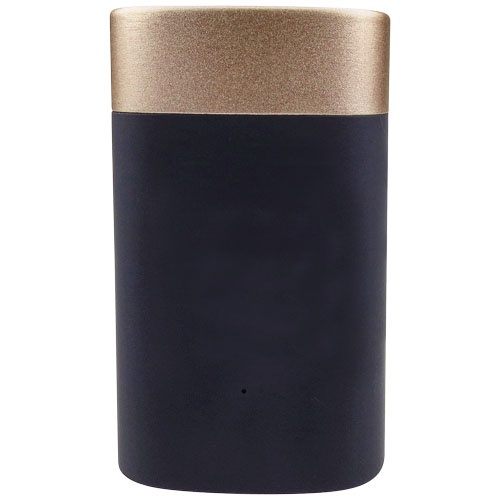 OPIS: Bezprzewodowy głośnik Bluetooth® o mocy 5W z podświetlanym logo, wykonany z metalu i gumy oraz z podwójnym wyjściem dźwięku dla niezrównanej jakości brzmienia jak na głośnik tego rozmiaru. Posiada wbudowany mikrofon i funkcję połączeń konferencyjnych. Pojemność: 800 mAh - 3,7 V. Częstotliwość: 50 Hz - 20 KHz. Moc: 1 x 5 W. S/N: 65db. Impedancja: 4 Ω. Bluetooth® JL 4.2. Waga netto: 152 gramów. Wymiary: 91 x 58 x 58 mm. W zestawie znajduje się pudełko upominkowe z magnetycznym zamknięciem wykonane z papieru z recyklingu. Guma, Aluminium.