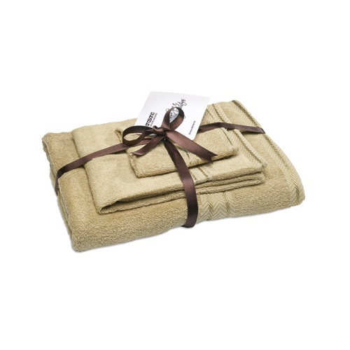 OPIS: Komplet 3 ręczników kąpielowych w różnych rozmiarach: kąpielowy(137x70cm), zwykły(70x40cm) i mały (30x30cm). Ozdobna stylowa wstążka.