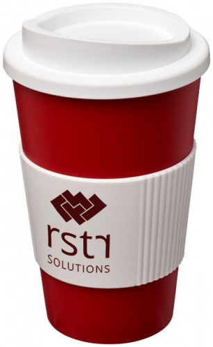 OPIS: Kubek termiczny z serii Americano® o pojemności 350 ml z uchwytem. Dwuwarstwowy, izolowany kubek z zakręcaną pokrywą odporną na zalanie, z silikonowym uchwytem. Pojemność wynosi 350 ml. Mieszaj i łącz kolory, aby stworzyć idealny kubek. Skontaktuj się z działem obsługi klienta, aby uzyskać informacje o dodatkowych opcjach kolorystycznych. Wykonano w Wielkiej Brytanii. PP tworzywo sztuczne, silikon.