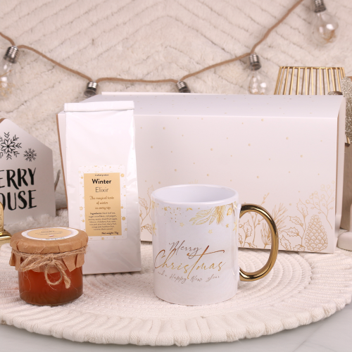 OPIS: Wyjątkowy kubek sublimacyjny Tomek Art Glow z wykończeniem ucha w srebrnym kolorze, w zestawie z aromatyczną zimową herbatą Winter Elixir (75g) oraz złocistym miodem wielokwiatowym (75g). PREZENTOWANE ZDOBIENIE MA CHARAKTER POGLĄDOWY I NIE JEST WLICZONE W CENĘ PRODUKTU. ZESTAW DOSTĘPNY W DEDYKOWANYM OPAKOWANIU MERRY Z WYBRANĄ OPCJĄ ZDOBIENIA.
