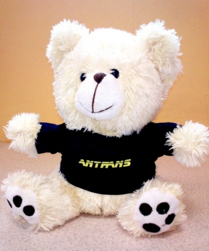 OPIS: Wykonana z pluszu urocza maskotka w kształcie misia. Miś ubrany w granatową koszulkę. Pakowana zbiorczo