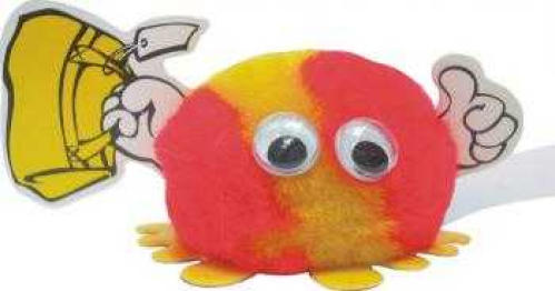 OPIS: specyfikacja: pompon poliestrowy, plastikowe ruchome oczka, tekturowe łapki oraz torba