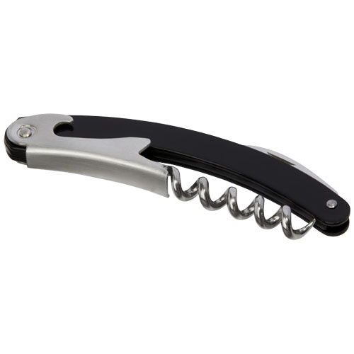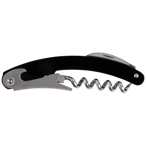 OPIS: Nóż kelnerski ze stali nierdzewnej z kolorowym korpusem, wyposażony w przecinak do folii i otwieracz do butelek.